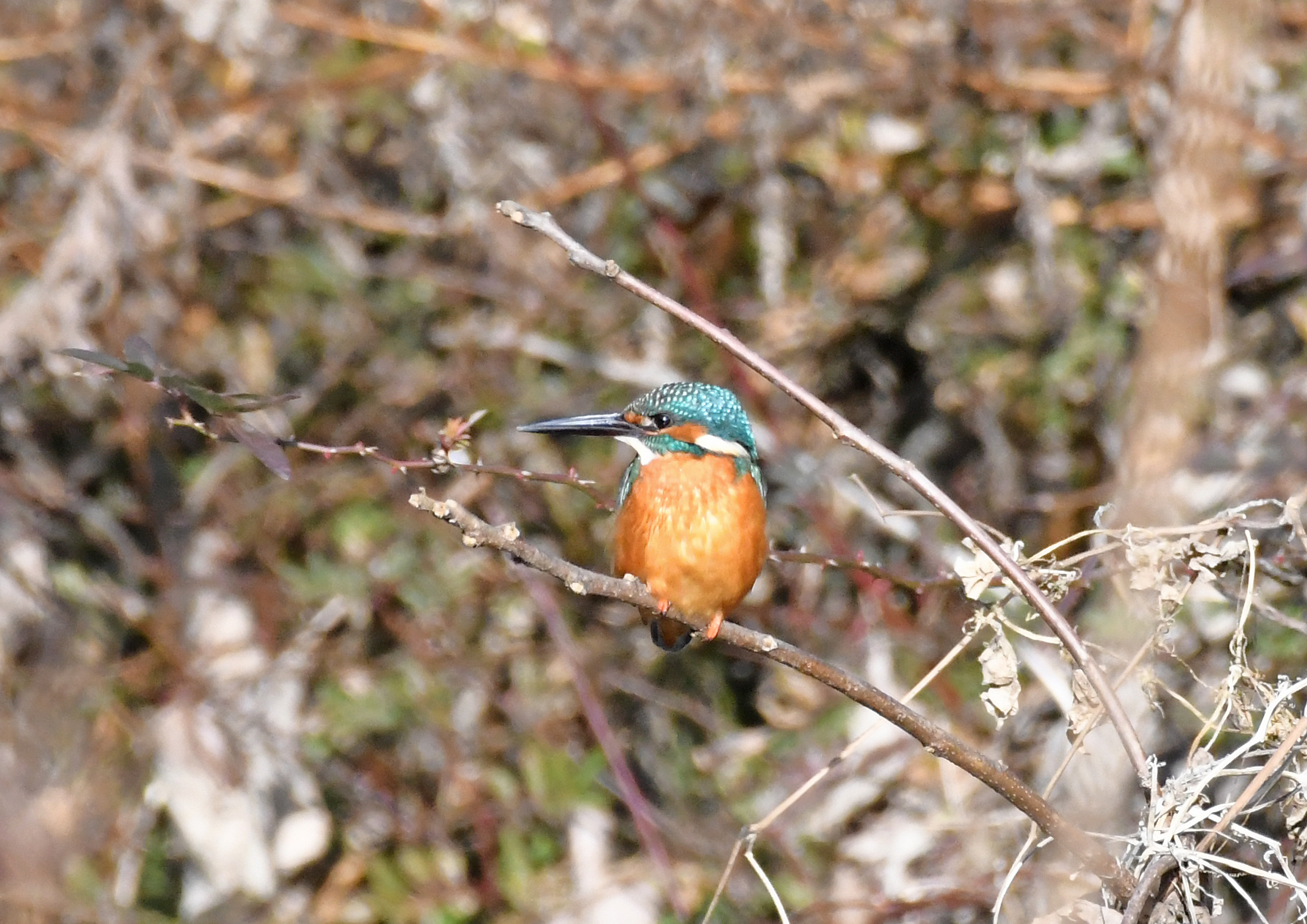 ホオジロ、カワセミを見ていると、ニホンイタチ(尻尾が短い)が歩いてきて、そのまま、居竦んで動きません。なんとなく、若いような気がします。
